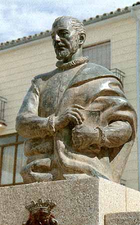 Busto del poeta D. Luis Barahona de Soto, autor de "Las lágrimas de Angélica", obra que Cervantes libra de la quema en su "Don Quijote".