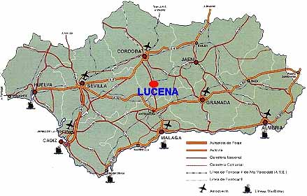 Lucena, en el centro geográfico de Andalucía, situada a sólo 60 min. de Málaga, 50 min. de Córdoba, 60 min. de Jaén, 90 min. de Sevilla y 90 min. de Granada.